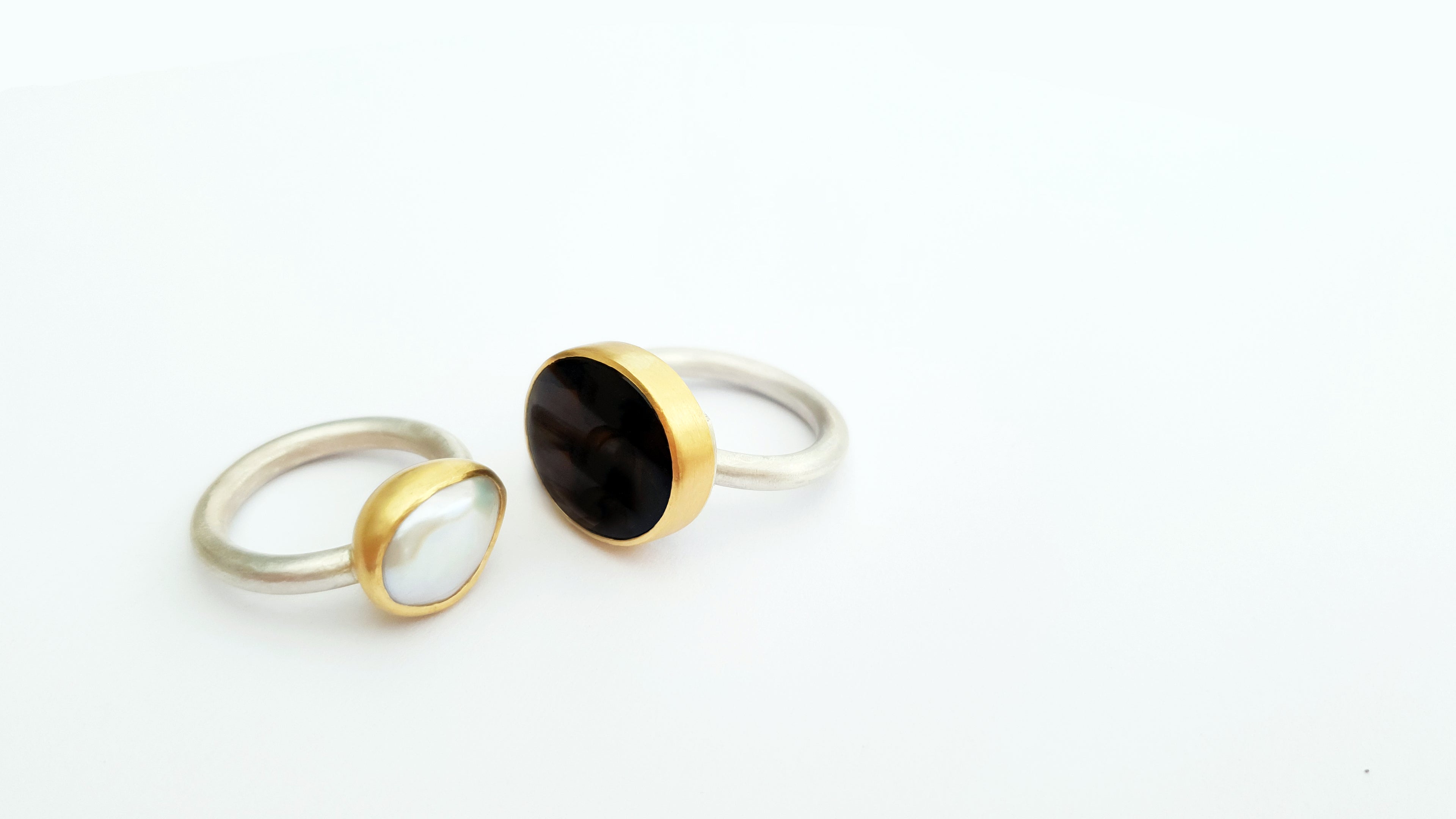 Chrysopras Ring in Silber mit 900er Goldfassung