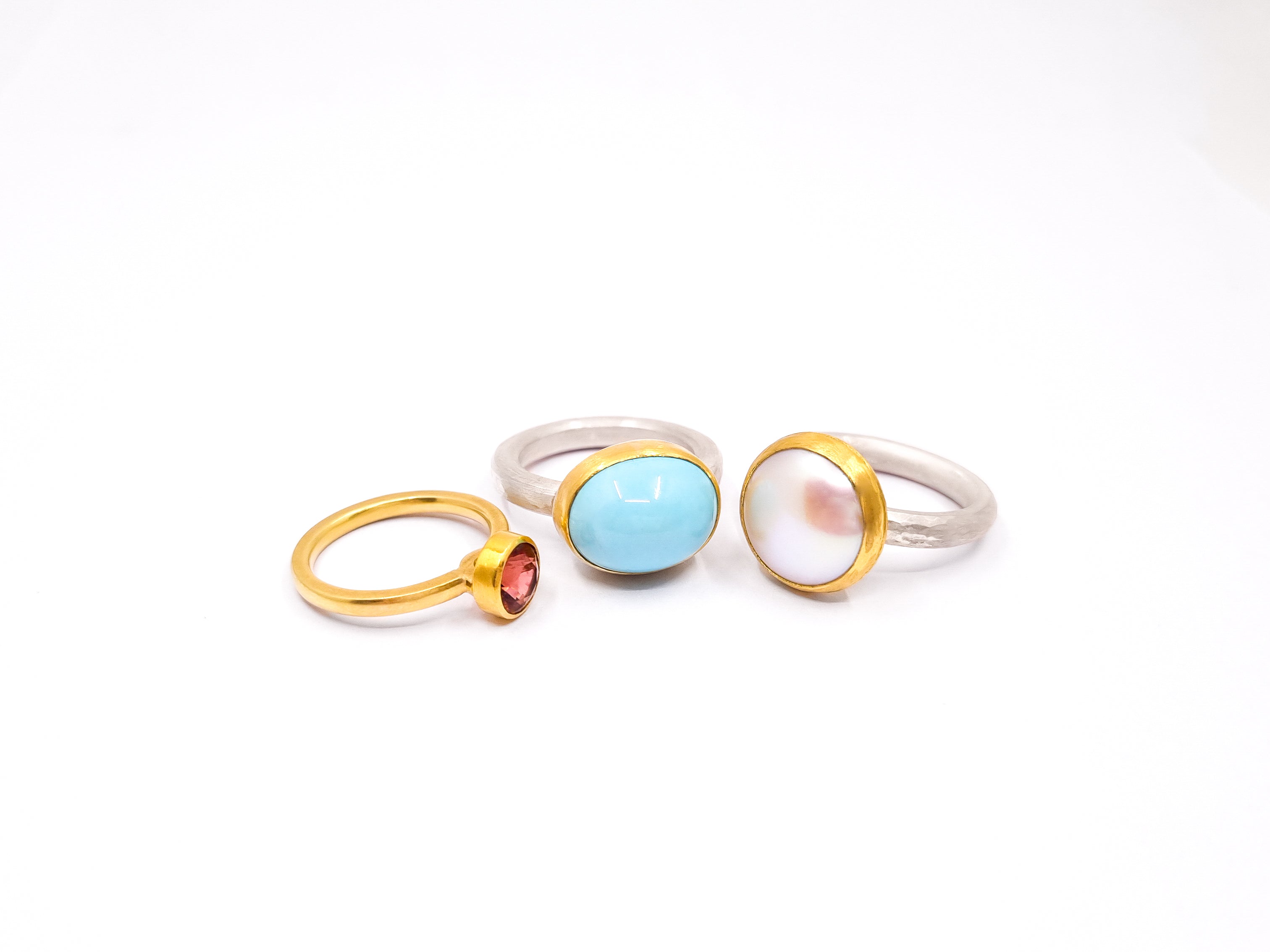 Chrysopras Ring in Silber mit 900er Goldfassung