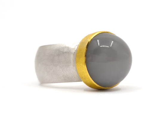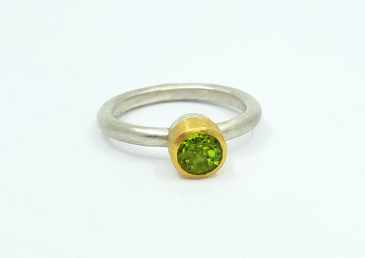 Chrysopras Ring in Silber mit 900er Goldfassung